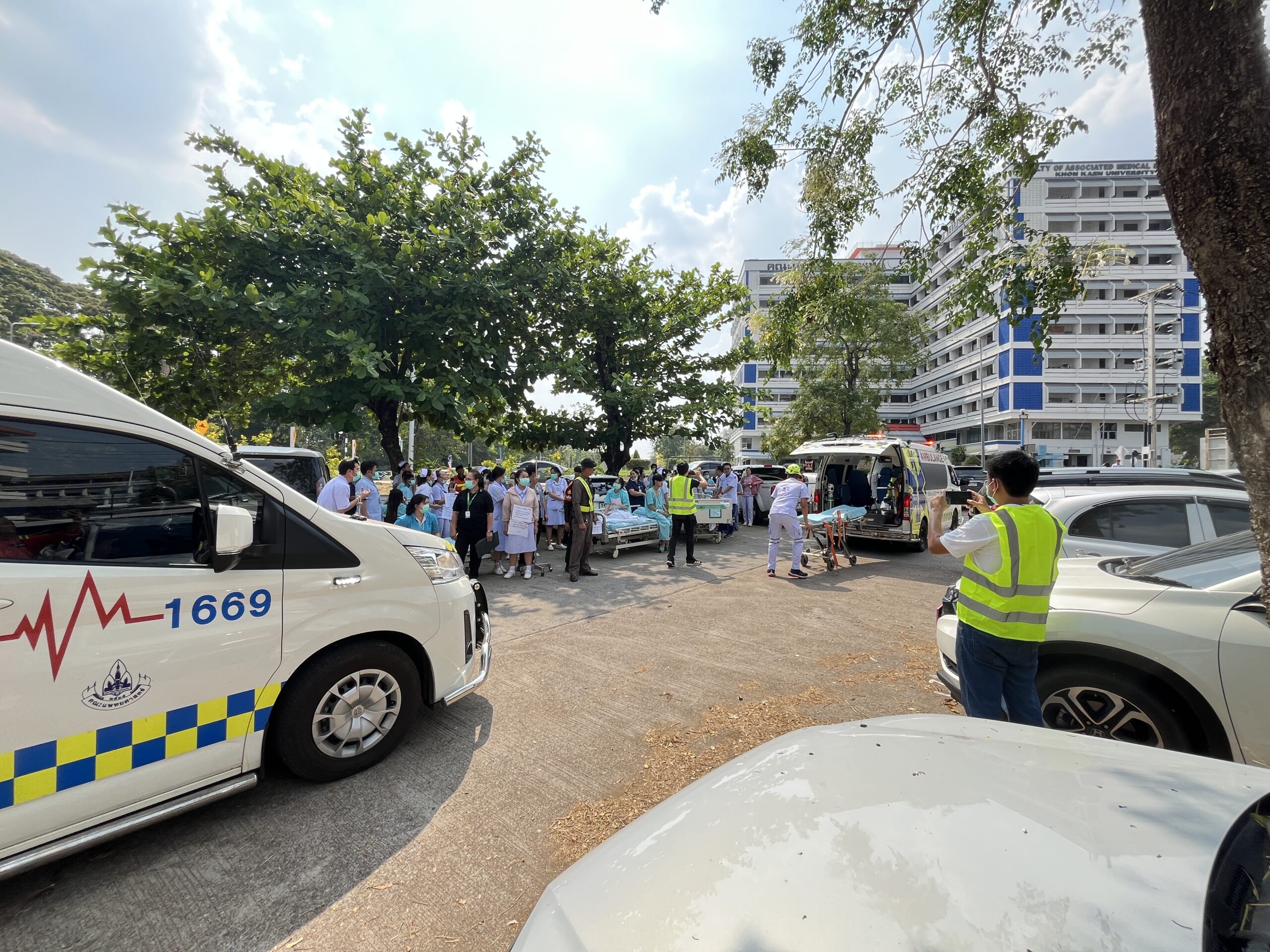 เมื่อวันพฤหัสบดีที่ 26 มีนาคม 2569 เวลา 09.00 – 16.00 น. กองป้องกันและรักษาความปลอดภัยมหาวิทยาลัยขอนแก่น นำโดยงานป้องกันและบรรเทาสาธารณภัย งานรักษาความปลอดภัยและจราจร และงานเทคโนโลยีความปลอดภัย เข้าร่วม “ฝึกซ้อมแผนอพยพป้องกันและระงับอัคคีภัยในโรงพยาบาลศรีนครินทร์” คณะแพทยศาสตร์ มหาวิทยาลัยขอนแก่น ประจำปี 2569 โดยมีผู้เช้าร่วมทั้งหมด 250 คน