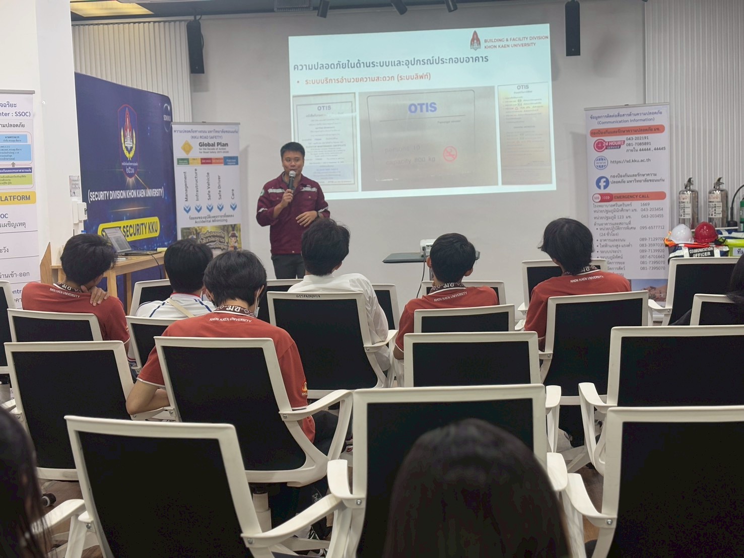เมื่อวันอังคารที่ 9 กันยายน 2568 เวลา 08.30 น. – 16.30 น. ณ ห้อง Social Space ชั้น 2 อาคารเรียนรวมและพัฒนาทักษะพื้นฐาน วิทยาลัยนานาชาติ มหาวิทยาลัยขอนแก่น และลานอาคาร 25 ปี มหาวิทยาลัยขอนแก่น ฝ่ายกายภาพและสิ่งแวดล้อม มหาวิทยาลัยขอนแก่น นำโดย นายมรกต สุบิน รักษาการแทนผู้อำนวยการกองป้องกันและรักษาความปลอดภัย นายเทียนชัย นาเมือง วิศวกรโยธากองอาคารและสถานที่ นายวิบูรณ์ศิลป์ พินิจมนตรี หัวหน้างานป้องกันและบรรเทาสาธารณภัย ทีมวิทยากร KKU Safety Training เป็นวิทยากรอบรมในโครงการอบรมเชิงปฏิบัติการ “การป้องกันและระงับอัคคีภัย วิทยาลัยนานาชาติ มหาวิทยาลัยขอนแก่น” ประจำปี 2568