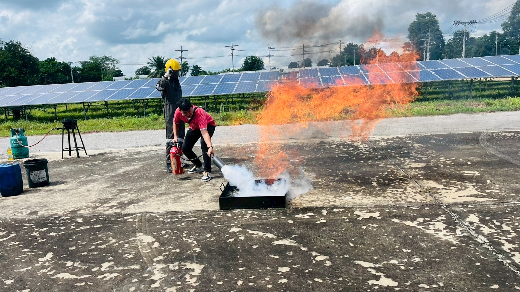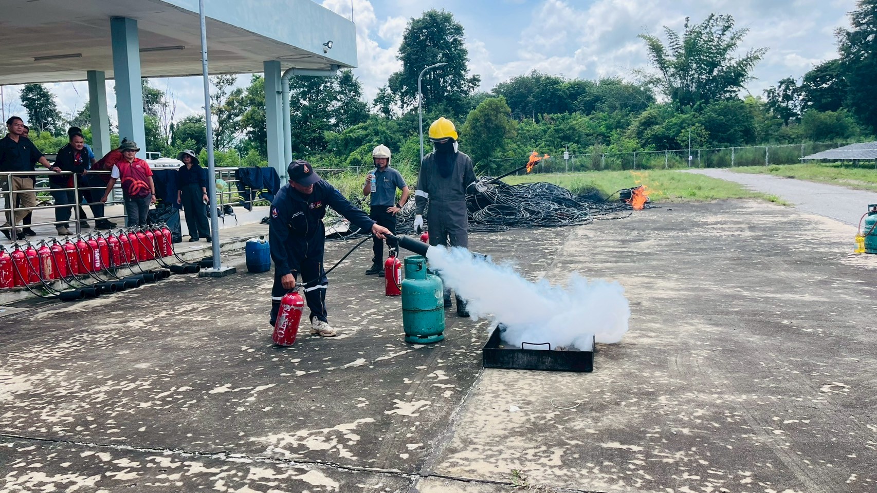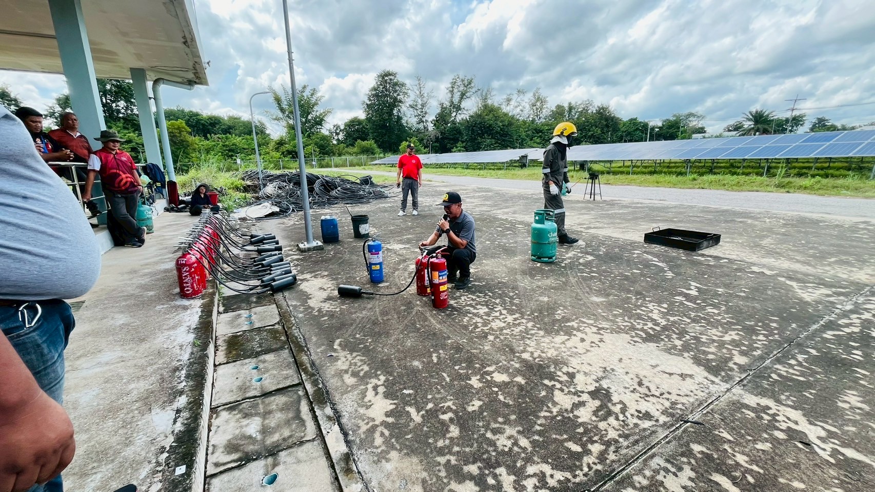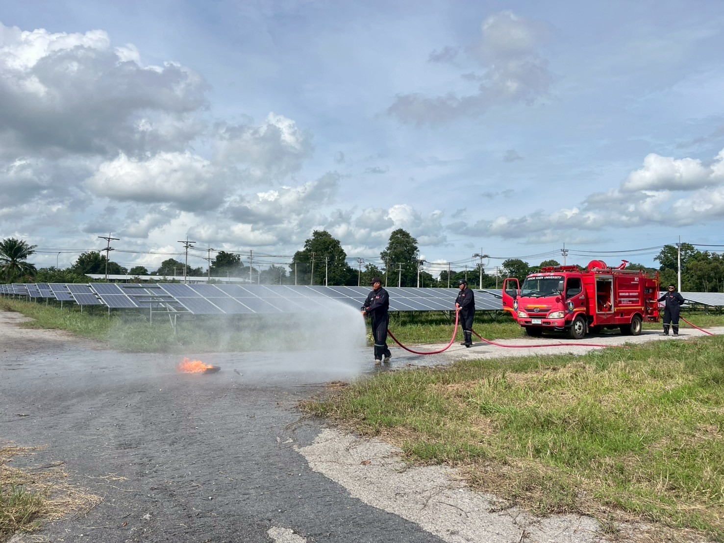 เมื่อวันอังคารที่ 9 กันยายน 2568 เวลา 08:30 น. – 16:30 น. ฝ่ายกายภาพและสิ่งแวดล้อม นำโดย รศ.ดร.ชูพงษ์ ทองคำสมุทร เจ้าหน้าที่กองป้องกันและรักษาความปลอดภัย เจ้าหน้าที่กองอาคารและสถานที่ และเจ้าหน้าที่กองสาธารณูปโภคและสิ่งแวดล้อม เข้าอบรมโครงการหลักสูตรดับเพลิงขั้นต้นและฝึกซ้อมเหตุฉุกเฉิน สถานประกอบการการผลิตไฟฟ้าพลังงานแสงอาทิตย์จากเทคโนโลยีแผงโฟโตโวลตาอิคส์ มหาวิทยาลัยขอนแก่น ณ ห้องประชุมอาคารอธิการบดี 2 มหาวิทยาลัยขอนแก่น เพื่อเพิ่มศักยภาพในการปฎิบัติหน้าที่ของเจ้าหน้าที่ให้เป็นไปด้วยความปลอดภัยและมีประสิทธิภาพ โดยมีผู้เข้าร่วมทั้งสิ้น 45 คน