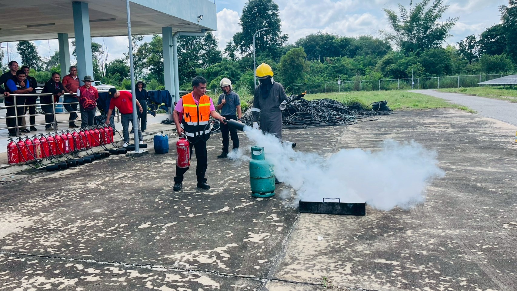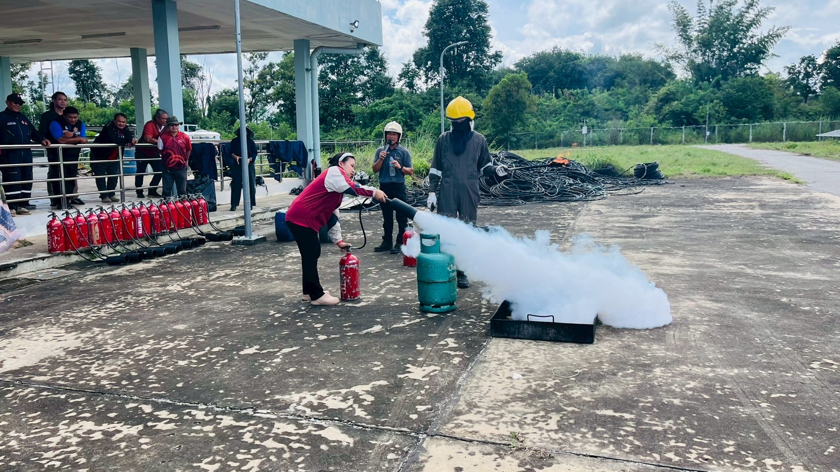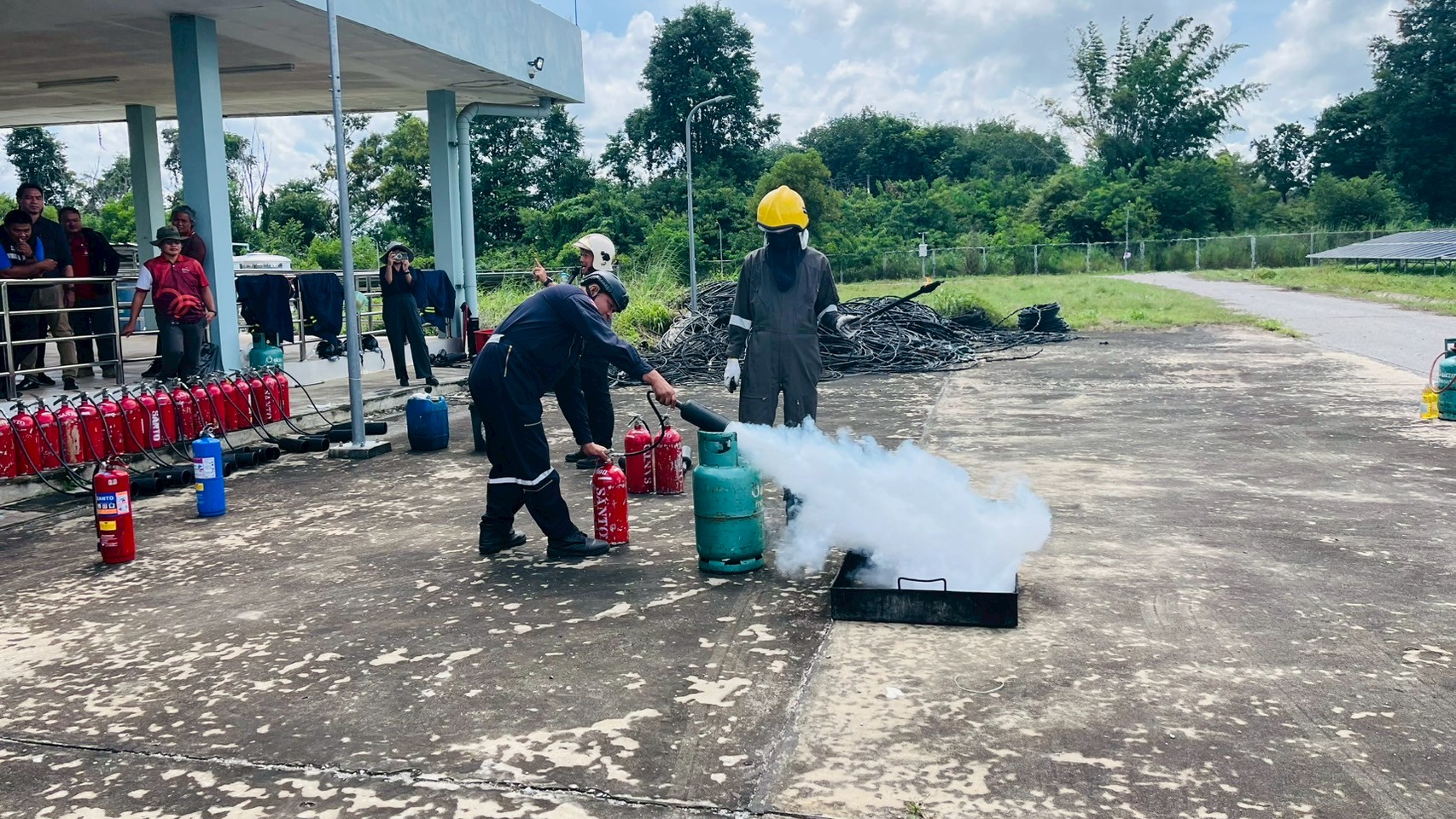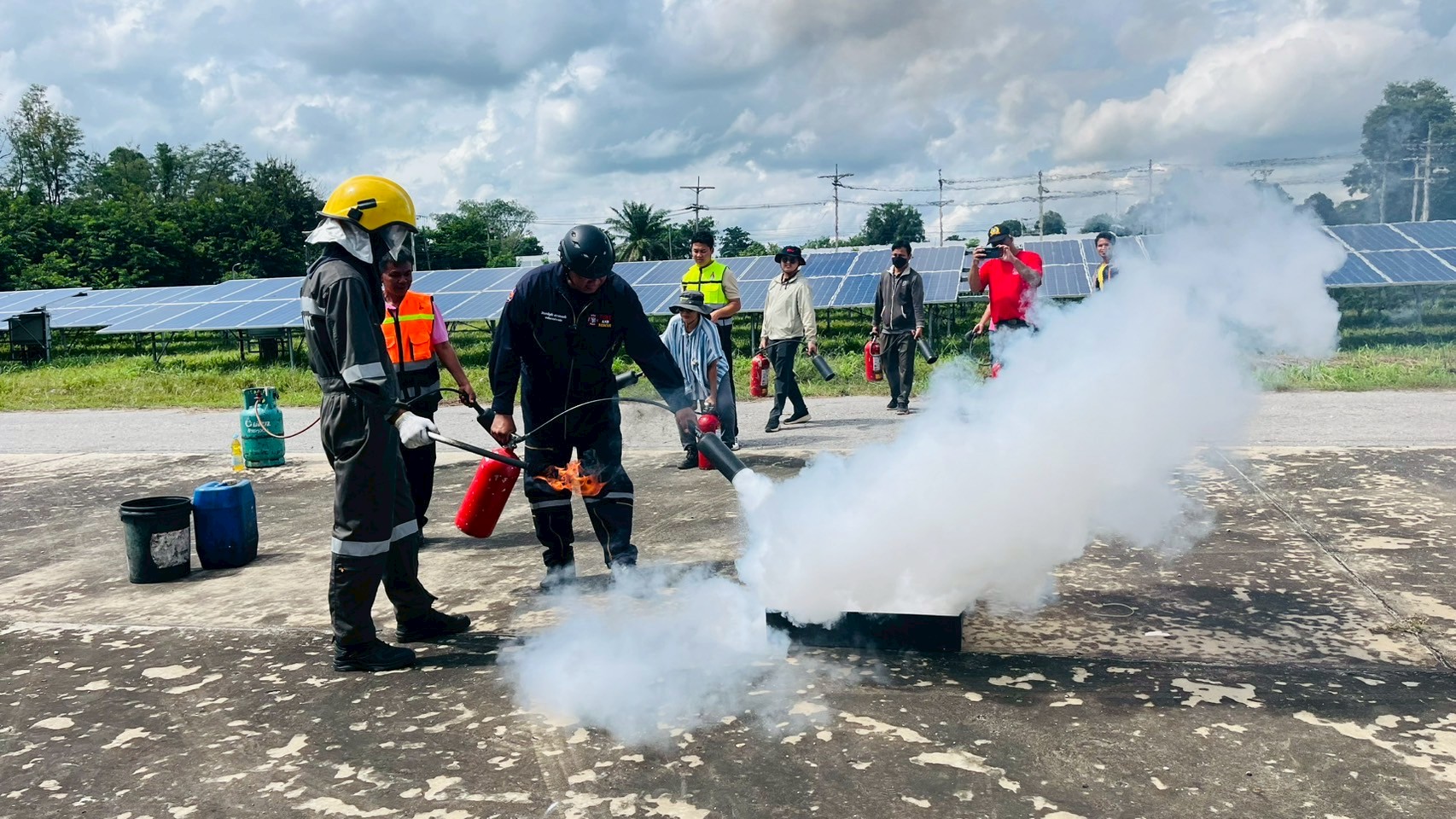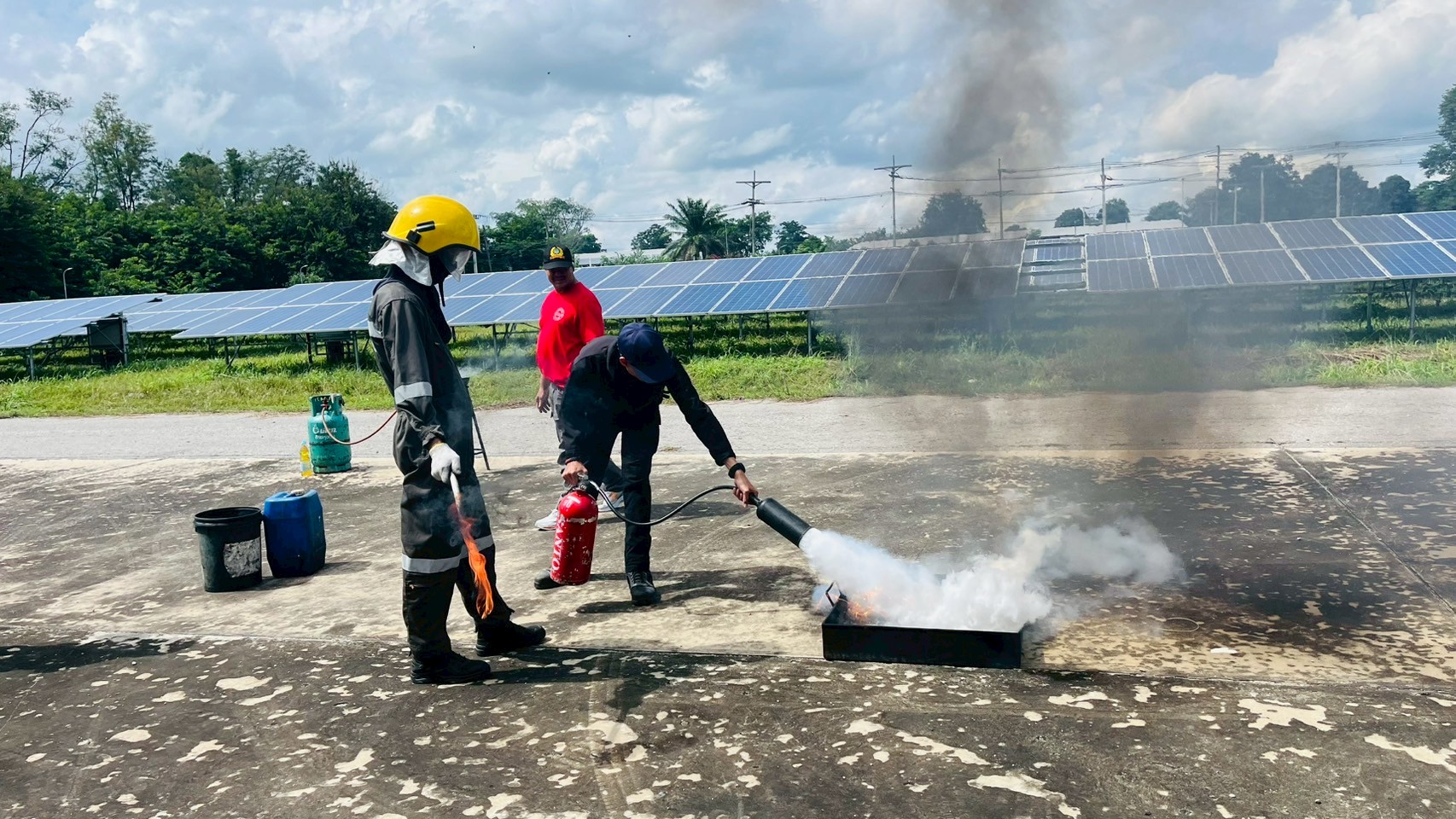 เมื่อวันอังคารที่ 9 กันยายน 2568 เวลา 08:30 น. – 16:30 น. ฝ่ายกายภาพและสิ่งแวดล้อม นำโดย รศ.ดร.ชูพงษ์ ทองคำสมุทร เจ้าหน้าที่กองป้องกันและรักษาความปลอดภัย เจ้าหน้าที่กองอาคารและสถานที่ และเจ้าหน้าที่กองสาธารณูปโภคและสิ่งแวดล้อม เข้าอบรมโครงการหลักสูตรดับเพลิงขั้นต้นและฝึกซ้อมเหตุฉุกเฉิน สถานประกอบการการผลิตไฟฟ้าพลังงานแสงอาทิตย์จากเทคโนโลยีแผงโฟโตโวลตาอิคส์ มหาวิทยาลัยขอนแก่น ณ ห้องประชุมอาคารอธิการบดี 2 มหาวิทยาลัยขอนแก่น เพื่อเพิ่มศักยภาพในการปฎิบัติหน้าที่ของเจ้าหน้าที่ให้เป็นไปด้วยความปลอดภัยและมีประสิทธิภาพ โดยมีผู้เข้าร่วมทั้งสิ้น 45 คน
