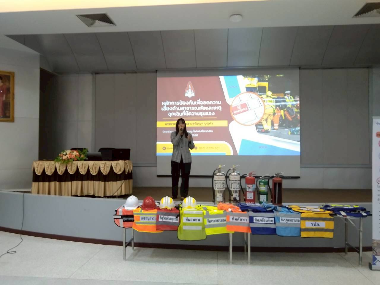 2. นางสาวอรัญญา บุญคำ นักชีวอนามัย กองสาธารณูปโภคและสิ่งแวดล้อม การบรรยาย เรื่อง “มาตรฐานความปลอดภัยในอาคาร และการจัดการสภาพแวดล้อมในการทำงาน”