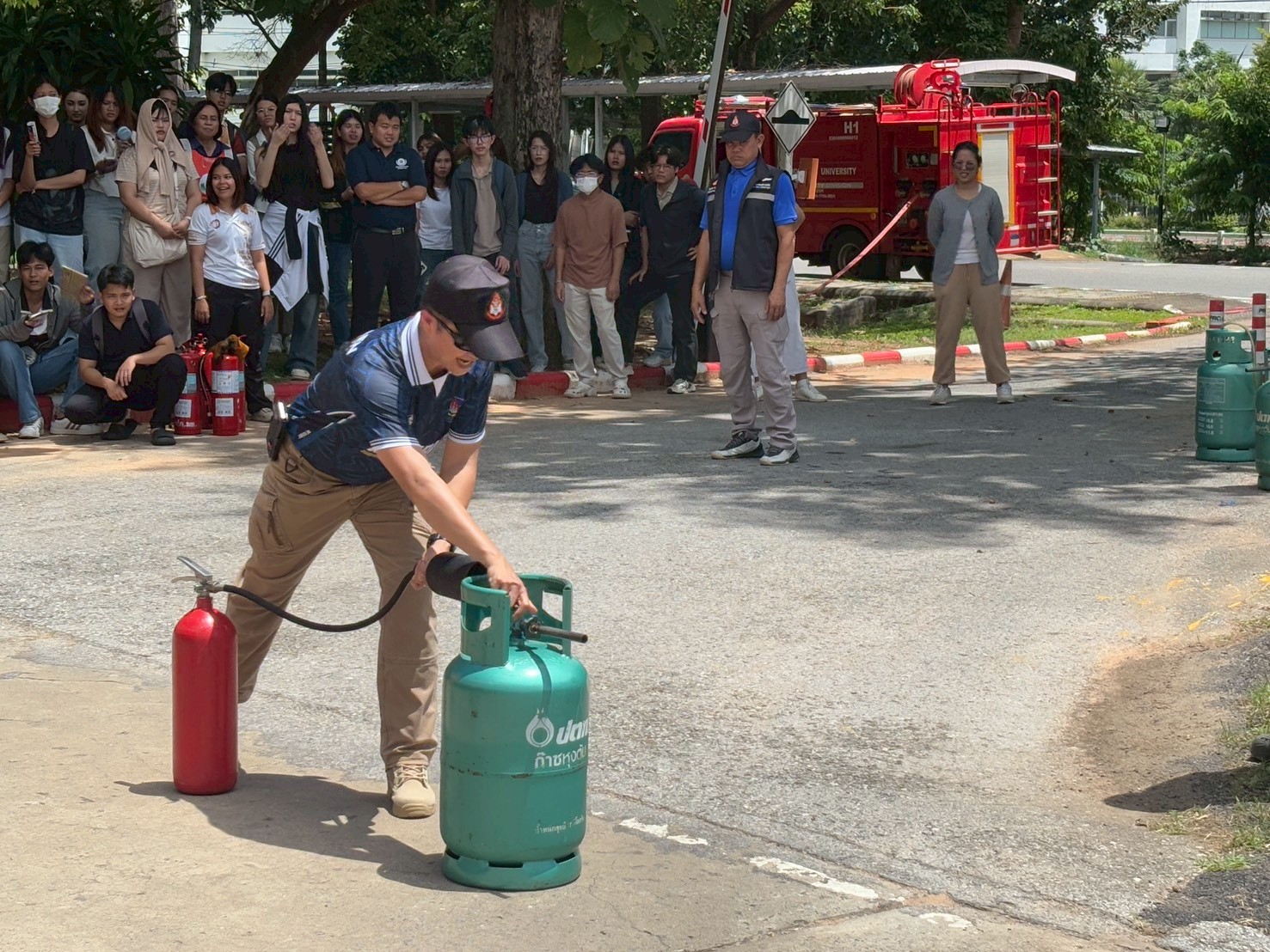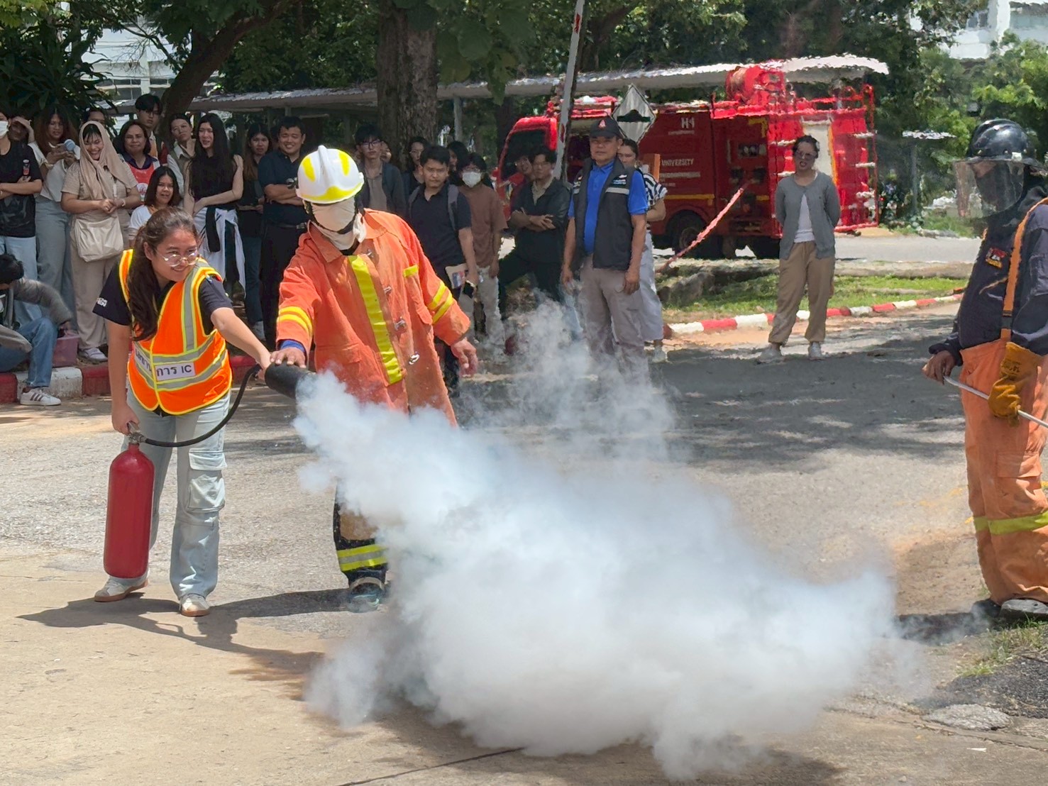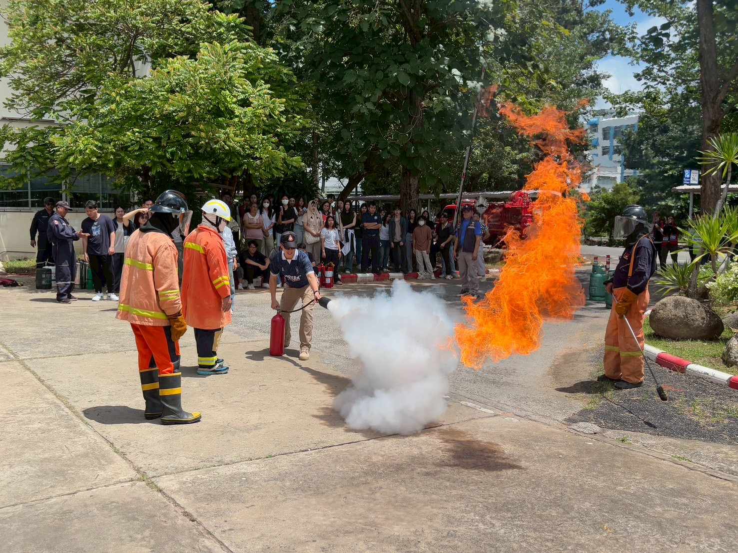 4. ทีมวิทยากร KKU Safety Training ร่วมฝึกภาคปฏิบัติ เรื่อง “ทักษะเบื้องต้นด้านการป้องกันและระงับอัคคีภัย”