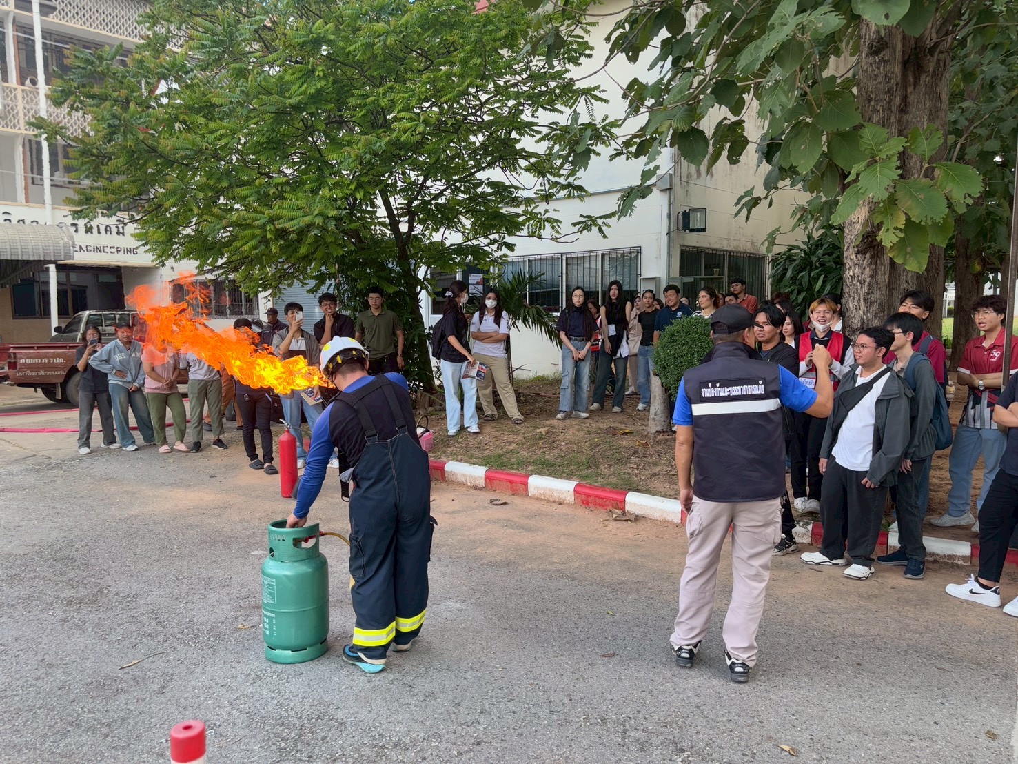 เมื่อวันเสาร์ที่ 13 กันยายน 2568 เวลา 08.30 น. – 12.30 น. ณ ห้องสัมนา 2 ชั้น 9 ตึกเพียรวิจิตร และบริเวณลานจอดรถยนต์ คณะวิศวกรรมศาสตร์ สาขาวิชาวิศวกรรมเคมี มหาวิทยาลัยขอนแก่น ฝ่ายกายภาพและสิ่งแวดล้อม นำโดย นายมรกต สุบิน ผู้อำนวยการกองป้องกันและรักษาความปลอดภัย นางสาวอรัญญา บุญคำ นักชีวอนามัยกองสาธารณูปโภคและสิ่งแวดล้อม นายวิบูรณ์ศิลป์ พินิจมนตรี หัวหน้างานป้องกันและบรรเทาสาธารณภัย ทีมวิทยากร KKU Safety Training เป็นวิทยากรอบรมในโครงการอบรมเชิงปฏิบัติการ “การป้องกันและระงับอัคคีภัย คณะวิศวกรรมศาสตร์ สาขาวิชาวิศวกรรมเคมี มหาวิทยาลัยขอนแก่น” ประจำปี 2568