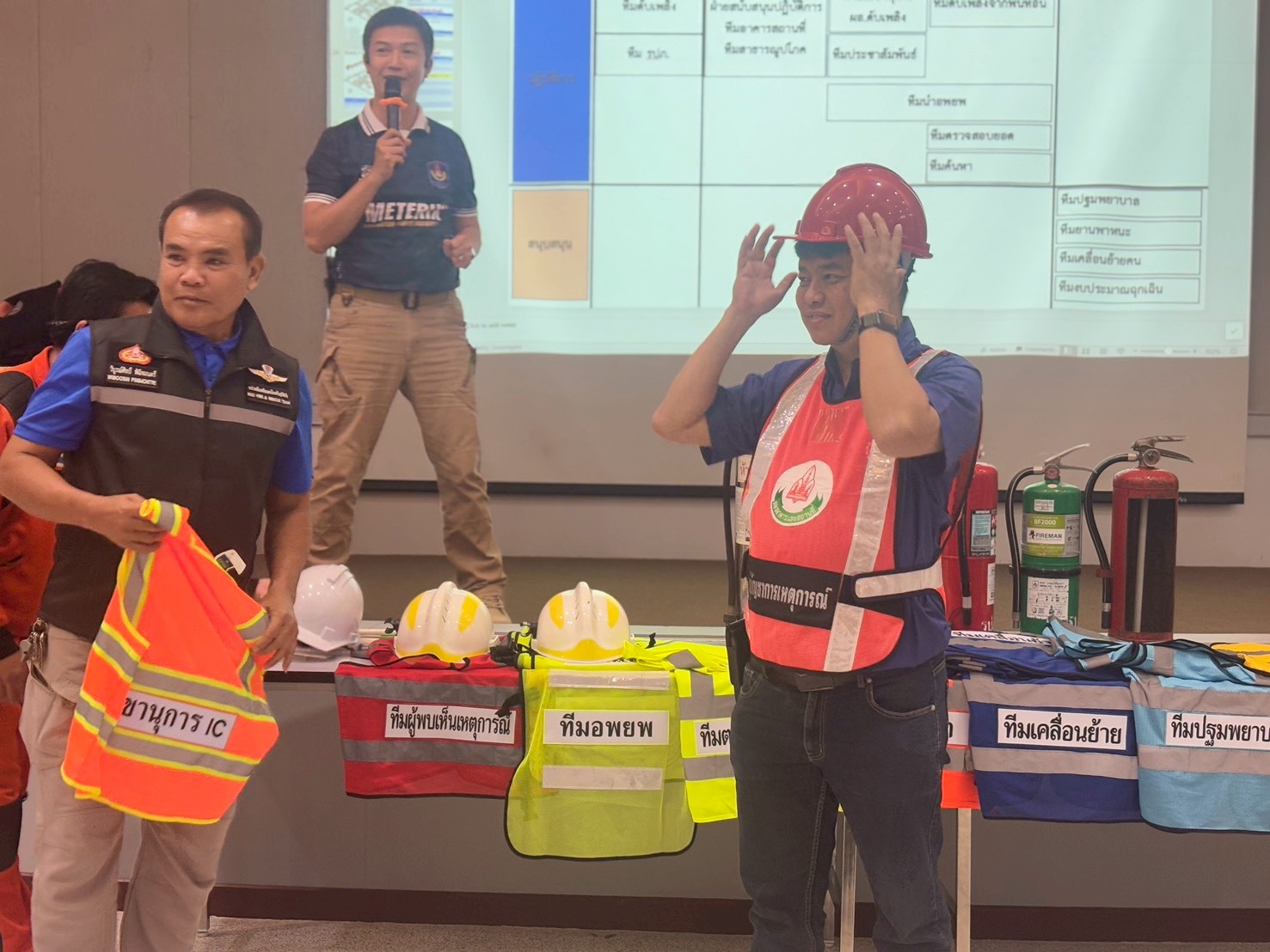 3. นายวิบูรณ์ศิลป์ พินิจมนตรี รักษาการในตำแหน่งหัวหน้างานป้องกันและบรรเทาสาธารณภัย บรรยายภาคทฤษฎี เรื่อง “การบัญชาการเหตุการณ์ กรณีเกิดเหตุสาธารณภัยที่มีความรุนแรงในอาคารสูง”
