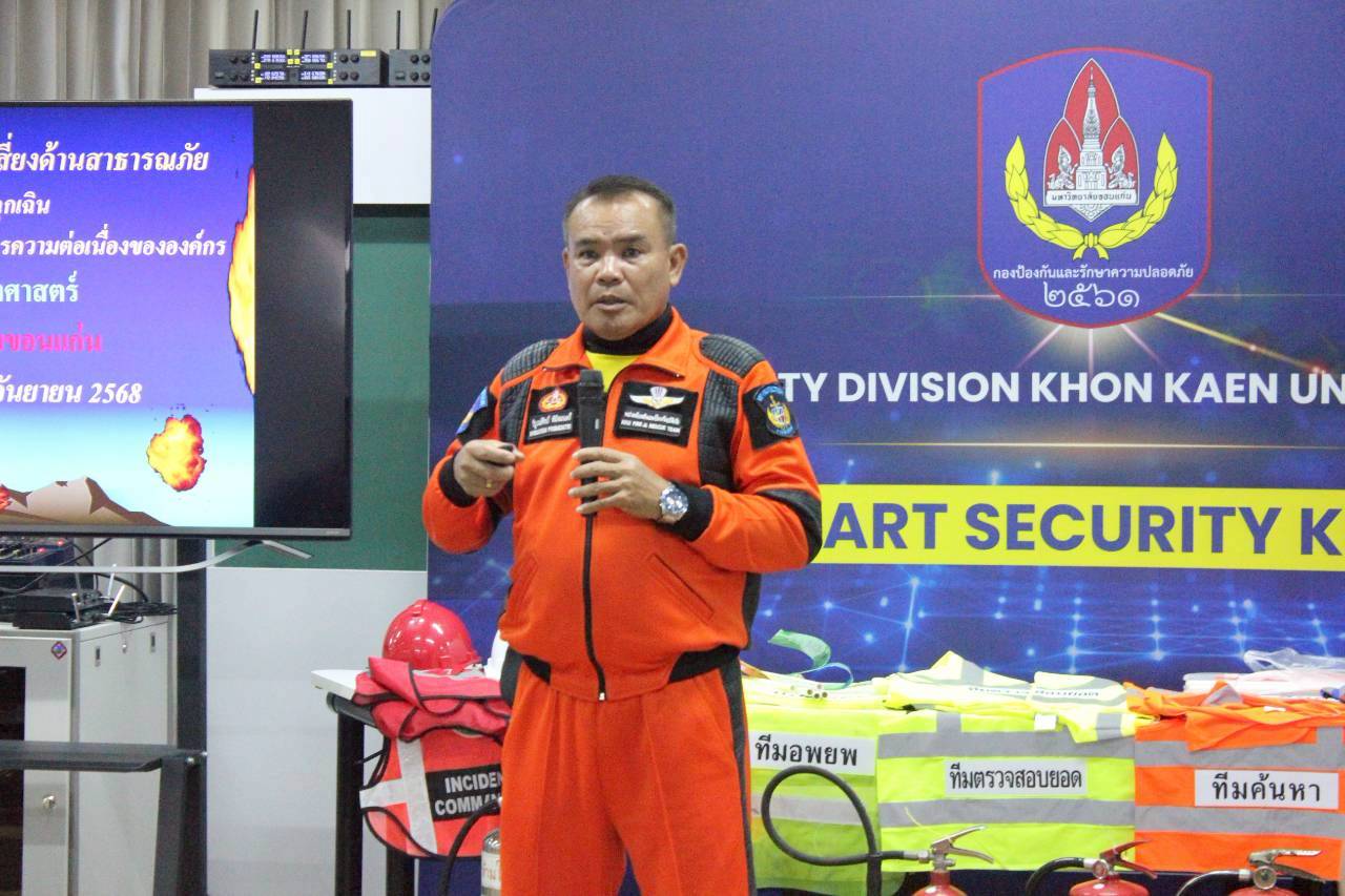 ในจัดโครงการในครั้งนี้มี รศ.ดร.อิศรา ก้านจักร คณบดีคณะศึกษาศาสตร์ มหาวิทยาลัยขอนแก่น เป็นประธานเปิดและชี้แจงวัตถุประสงค์ในการฝึกโครงการอบรมเชิงปฏิบัติการ “การป้องกันและระงับอัคคีภัย คณะศึกษาศาสตร์ มหาวิทยาลัยขอนแก่น” ประจำปี 2568