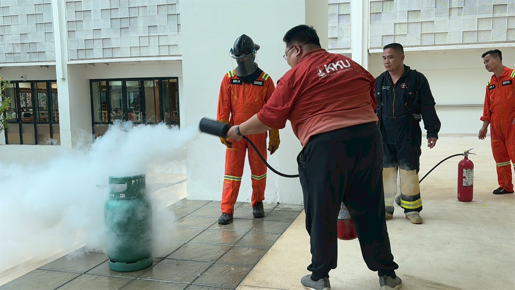 4. ทีมวิทยากร KKU Safety Training ร่วมฝึกภาคปฏิบัติ เรื่อง “ทักษะเบื้องต้นด้านการป้องกันและระงับอัคคีภัย”