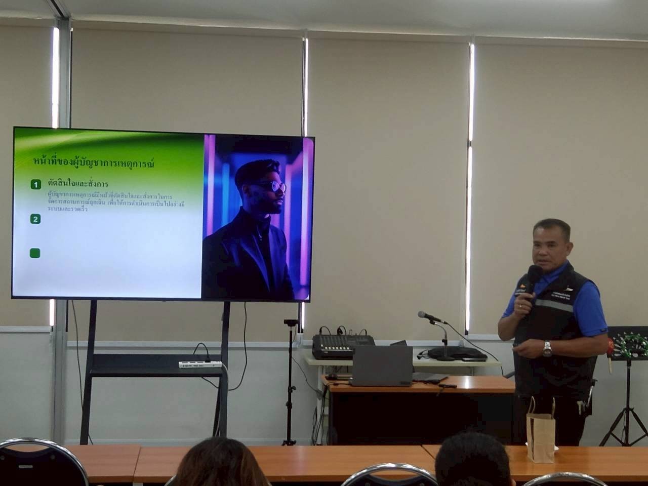 3. นายวิบูรณ์ศิลป์ พินิจมนตรี รักษาการในตำแหน่งหัวหน้างานป้องกันและบรรเทาสาธารณภัย บรรยายภาคทฤษฎี เรื่อง “การบัญชาการเหตุการณ์ กรณีเกิดเหตุสาธารณภัยที่มีความรุนแรงในอาคารสูง”