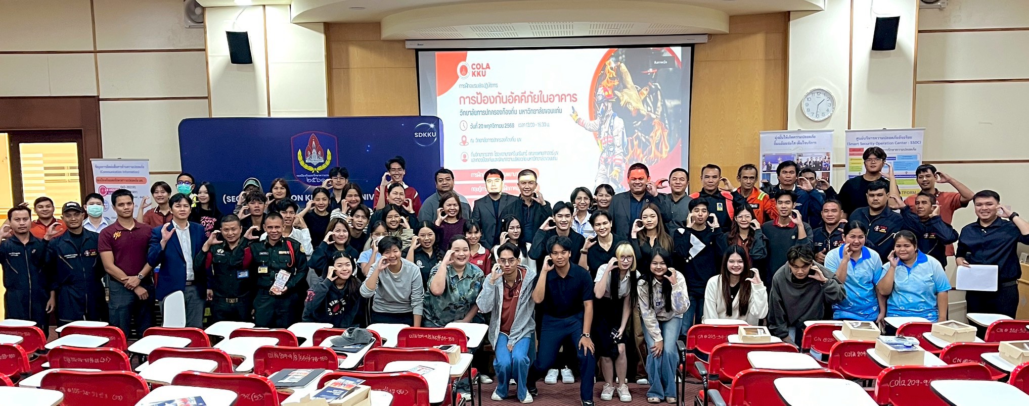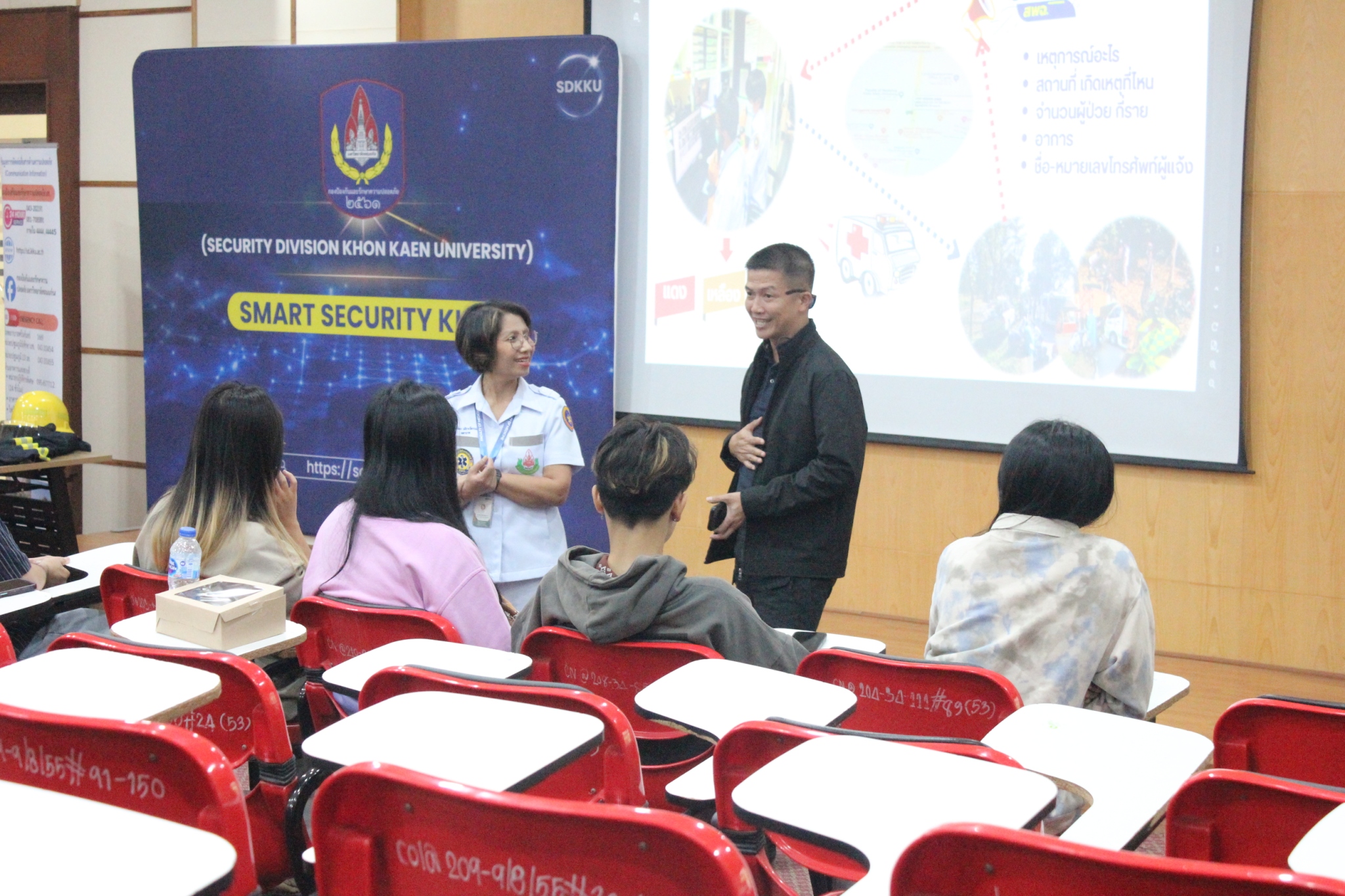 วันพฤหัสบดีที่ 20 พฤศจิกายน 2568 เวลา 13.00 – 16.30 น. กองป้องกันและรักษาความปลอดภัย มหาวิทยาลัยขอนแก่น นำโดย นายมรกต สุบิน ผู้อำนวยการกองป้องกันและรักษาความปลอดภัย นายวิบูรณ์ศิลป์ พินิจมนตรี หัวหน้างานป้องกันและบรรเทาสาธารณภัย พร้อมทีม KKU FIRE & RESCUE TEAM เป็นวิทยากรอบรมเชิงปฏิบัติการ “การป้องกันอัคคีภัยในอาคาร” วิทยาลัยปกครองท้องถิ่น มหาวิทยาลัยขอนแก่น ณ ห้อง COLA209 อาคารวิทยาลัยปกครองท้องถิ่น โดยมีผู้เข้าร่วมทั้งหมด 70 คน