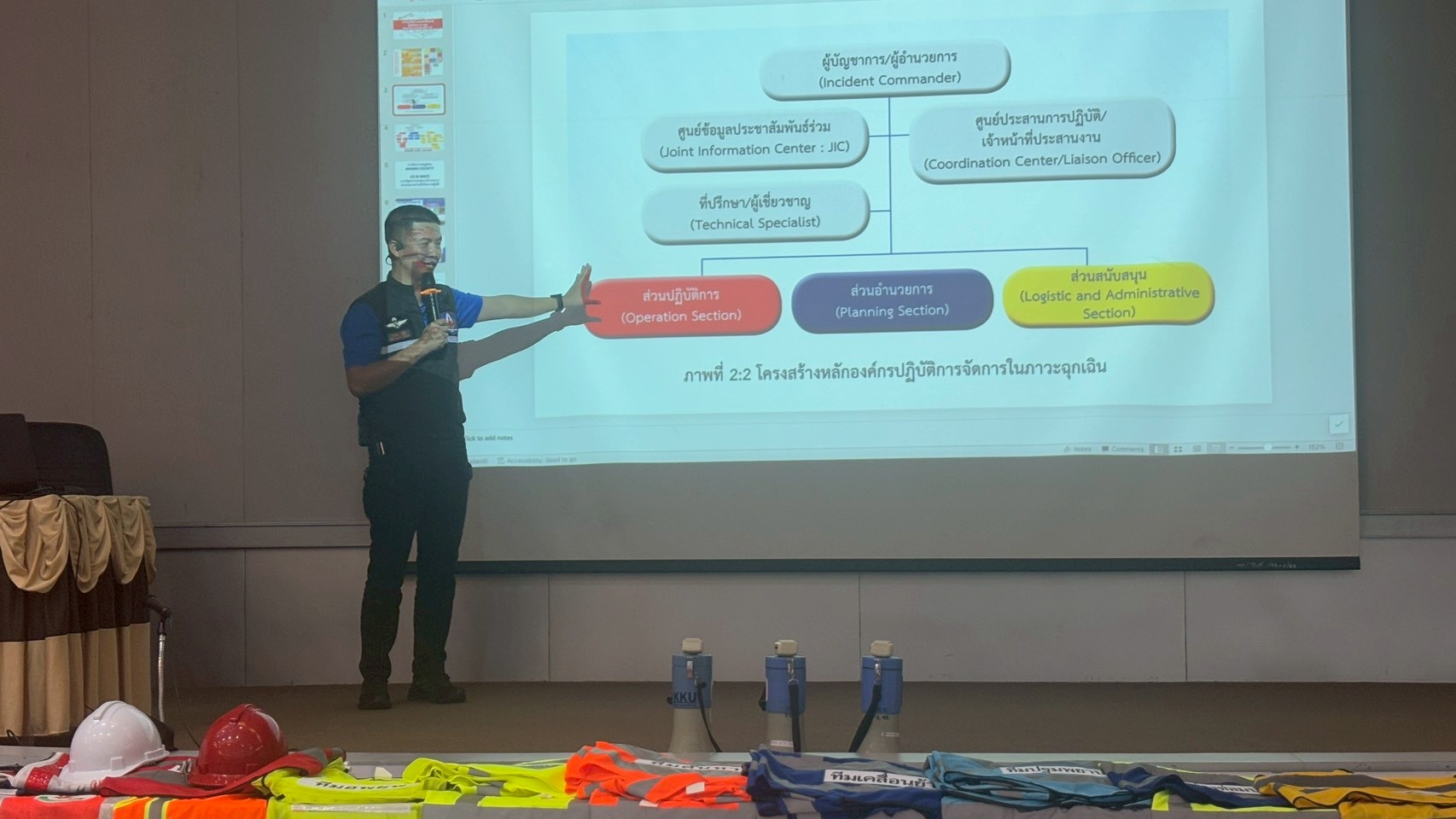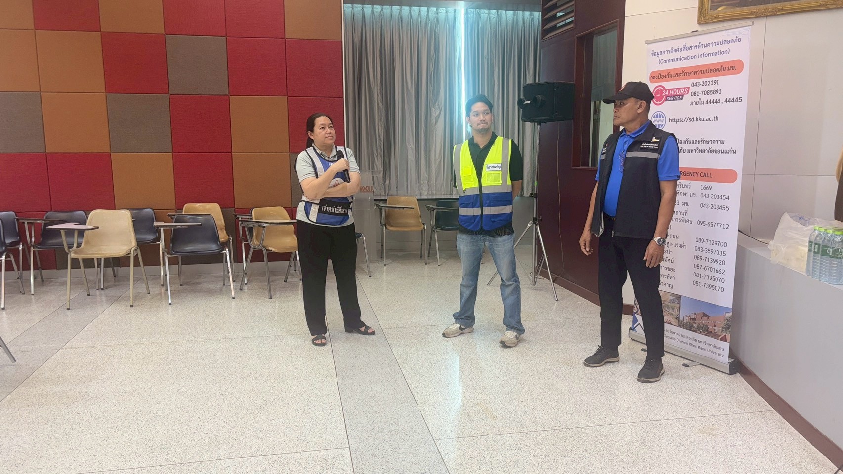 เมื่อวันพฤหัสบดีที่ 25 กันยายน 2568 เวลา 13.00 – 16.30 น. กองป้องกันและรักษาความปลอดภัย มหาวิทยาลัยขอนแก่น นำโดย นายมรกต สุบิน ผู้อำนวยการกองป้องกันและรักษาความปลอดภัย นายวิบูรณ์ศิลป์ พินิจมนตรี หัวหน้างานป้องกันและบรรเทาสาธารณภัย และทีมวิทยากร KKU FIRE & RESCUE TEAM เป็นวิทยากรอบรมเชิงปฏิบัติการ “การป้องกันและระงับอัคคีภัยภายในอาคาร” คณะวิศวกรรมศาสตร์ (3 ภาควิชา) มหาวิทยาลัยขอนแก่น ประจำปี 2568 โดยมีการจำลองเหตุการณ์เพลิงไหม้ในอาคาร และการอพยพหนีไฟ เพื่อให้บุคลากรและนักศึกษาได้รับความรู้เบื้องต้นในการป้องกันตนเองให้ปลอดภัยจากเหตุการณ์ไฟไหม้ อีกทั้งได้ฝึกปฏิบัติในการซ้อมรับมือเหตุการณ์หนีภัยไฟไหม้ และสามารถนำไปประยุกต์ใช้และสามารถแก้ไขสถานการณ์ได้เมื่อเกิดเหตุการณ์จริง โดยมีผู้เข้าร่วมทั้งหมด 200 คน