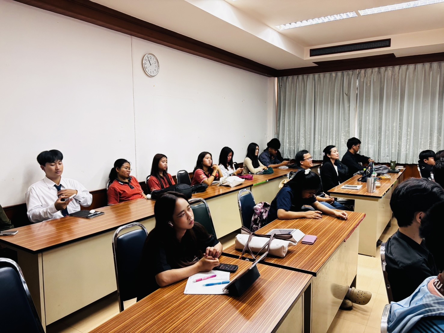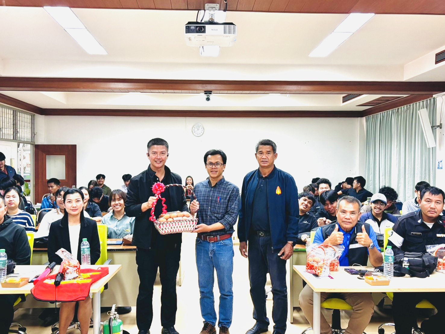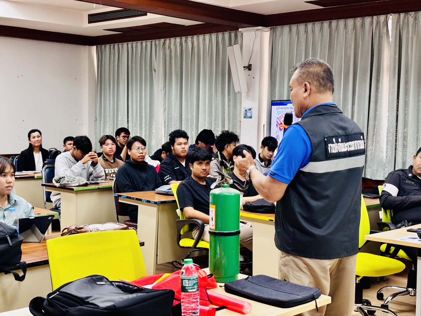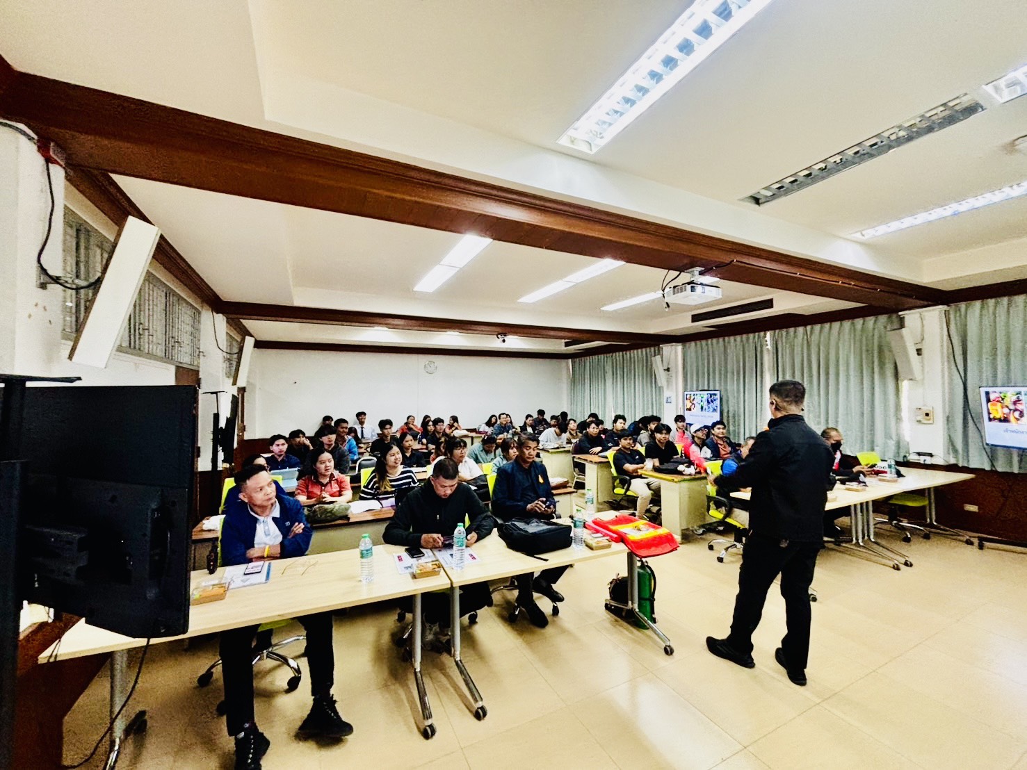 เมื่อวันจันทร์ที่ 19 มกราคม 2569 เวลา 08.30 – 12.00 น. กองป้องกันและรักษาความปลอดภัยมหาวิทยาลัยขอนแก่น นำโดย นายมรกต สุบิน ผู้อำนวยการกองป้องกันและรักษาความปลอดภัย หัวหน้างานป้องกันและบรรเทาสาธารณภัย หัวหน้างานสืบสวนและการข่าว พร้อมทีมหน่วยควบคุมและสั่งการ หน่วยงานจราจร เป็นวิทยากรให้ความรู้ฝึกอบรมงานจราจรและรักษาความปลอดภัยแก่นักศึกษา เพื่อรักษาความปลอดภัยในงานเกษตรภาคอีสาน ประจำปี 2569 จำนวน 50 คน
