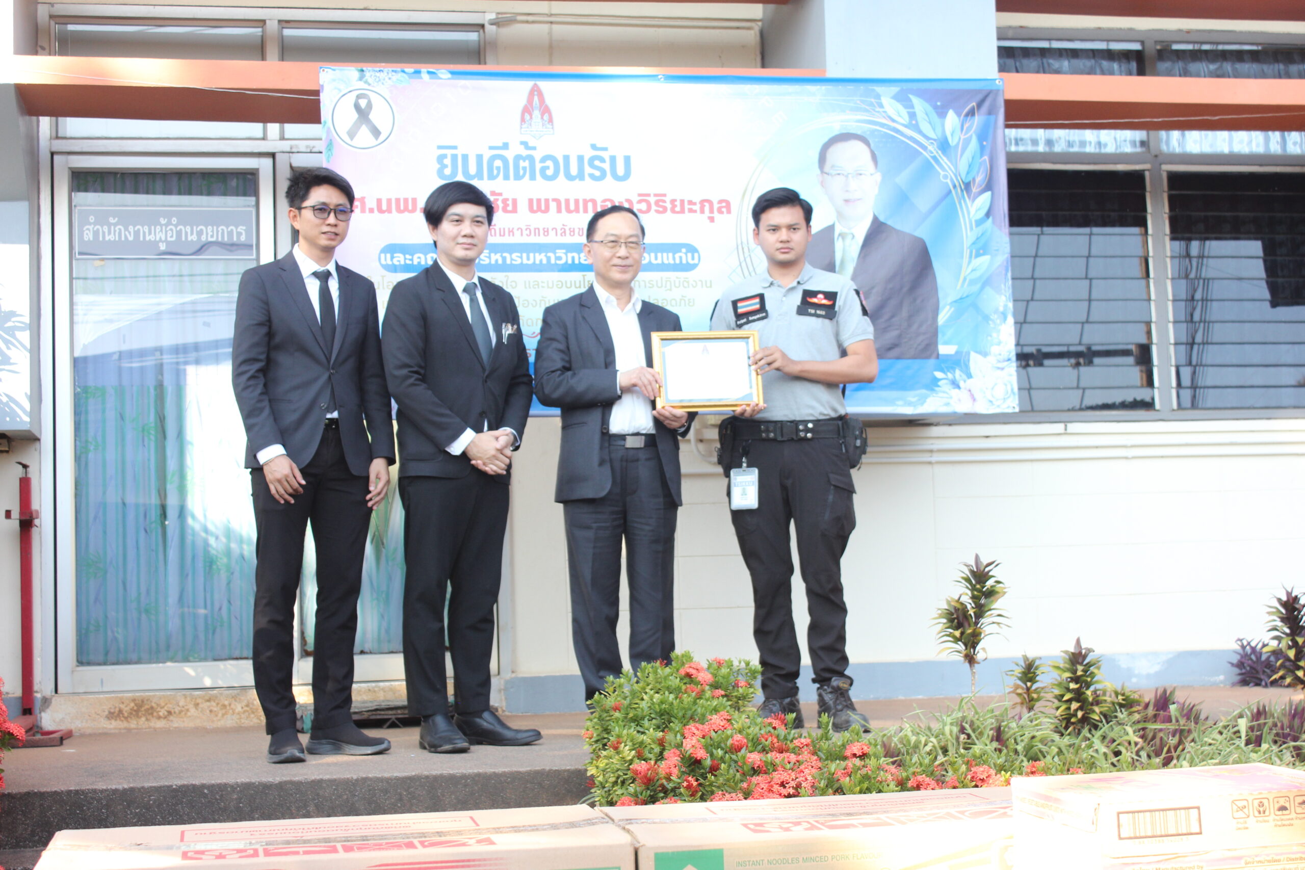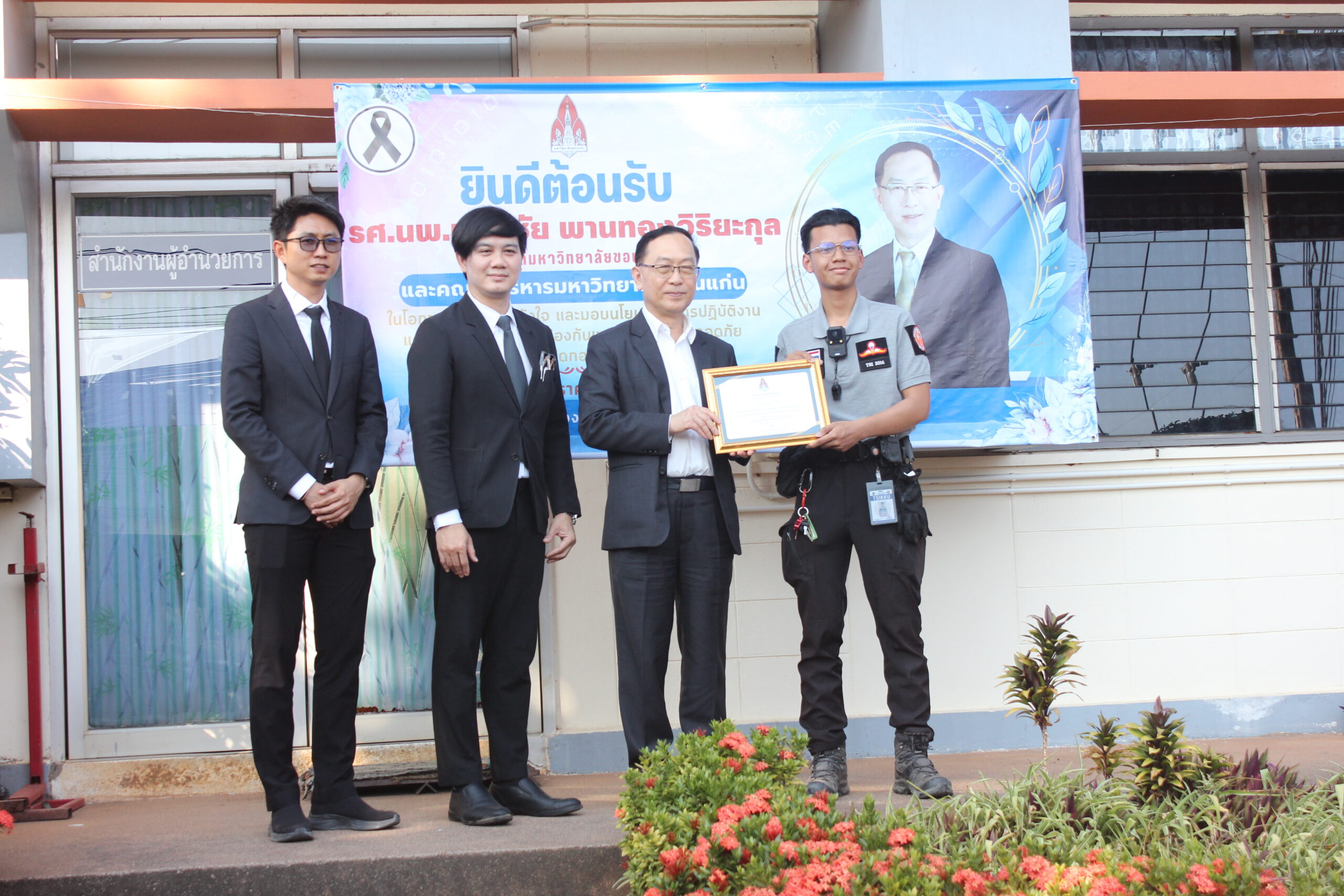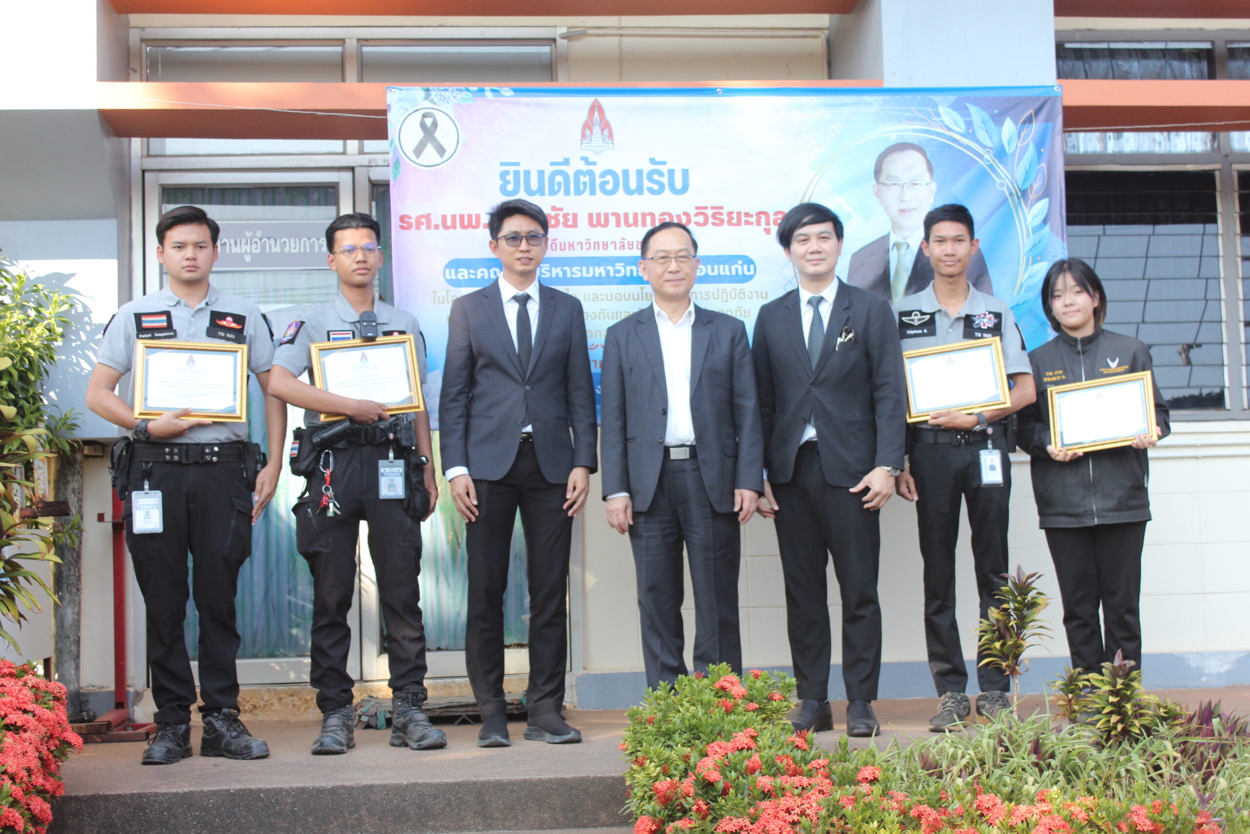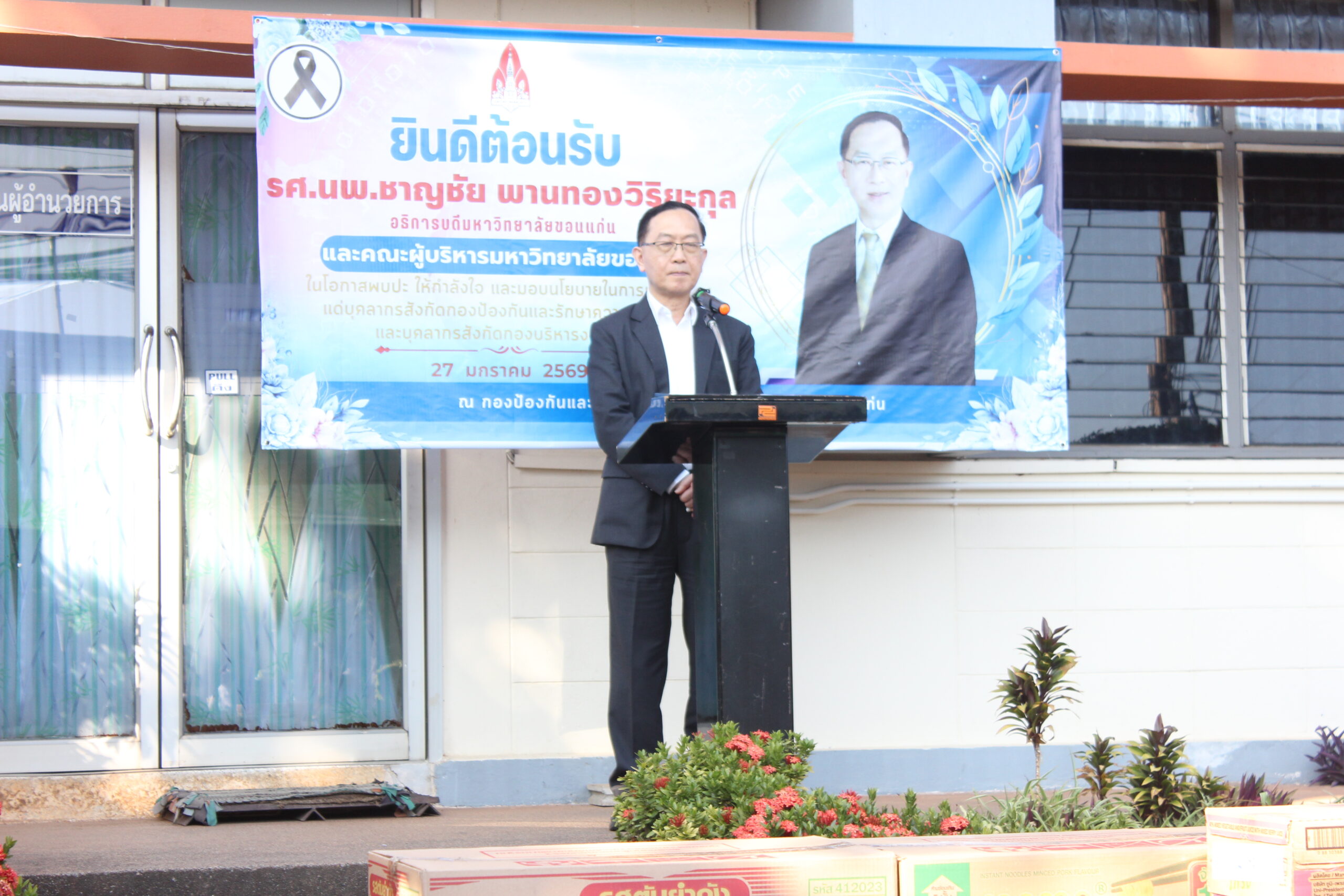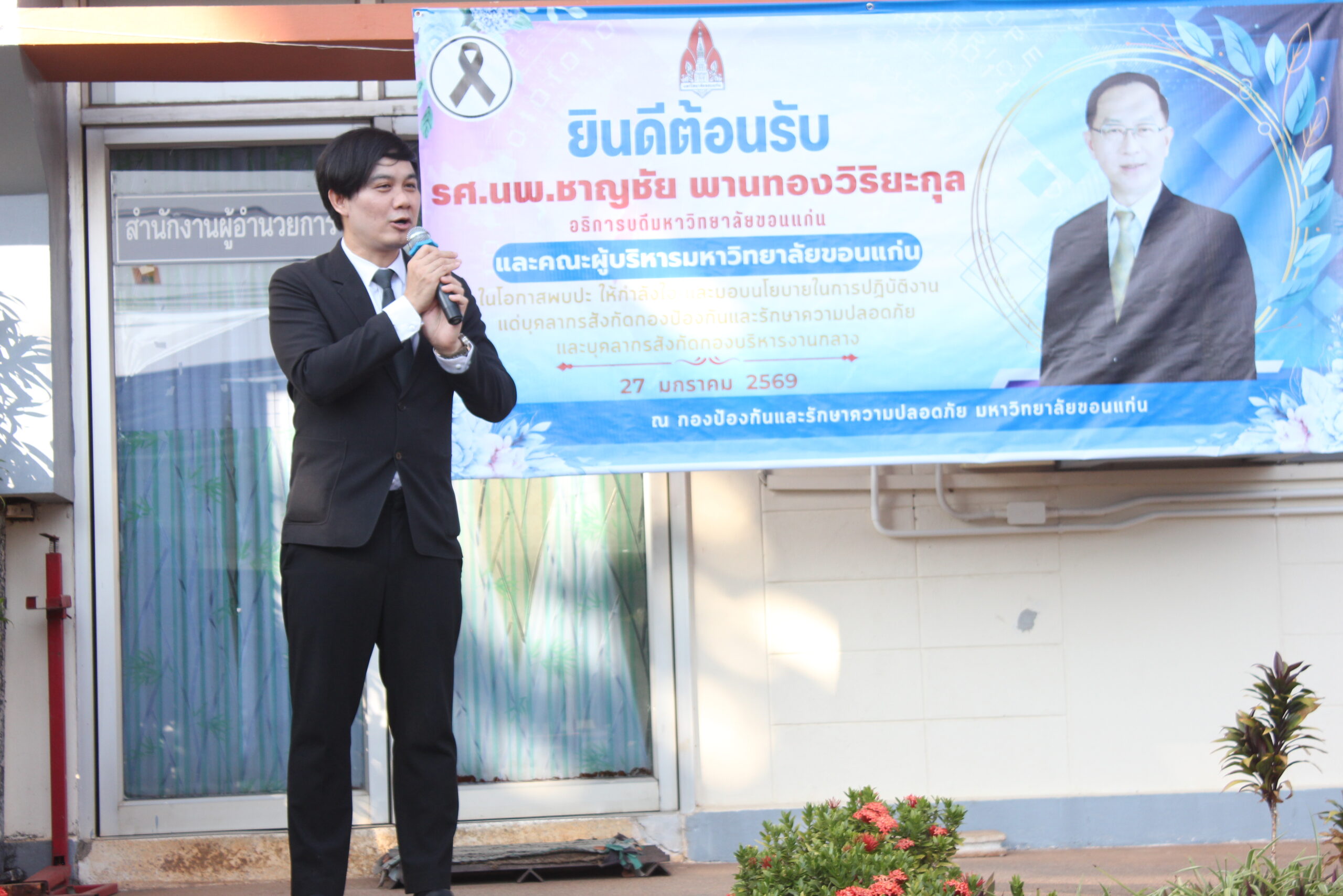 วันอังคารที่ 27 มกราคม 2569 เวลา 15.30 – 16.30 น. กองป้องกันและรักษาความปลอดภัย จัดโครงการผู้บริหารพบปะบุคลากรมหาวิทยาลัยขอนแก่น ประจำปี 2569 โดยมีผู้บริหาร นำโดย รศ.นพ.ชาญชัย พานทองวิริยะกุล อธิการบดีมหาวิทยาลัยขอนแก่น รศ.ดร.ชูพงษ์ ทองคำสมุทร รองอธิการบดีฝ่ายกายภาพและสิ่งแวดล้อม และ รศ.ดร.ปิยะวัชร ฝอยทอง ผู้ช่วยอธิการบดีฝ่ายกายภาพและสิ่งแวดล้อม เพื่อมอบนโยบายและให้โอวาทการปฏิบัติงานด้านการป้องกันและรักษาความปลอดภัย โดยจัดขึ้นที่กองป้องกันและรักษาความปลอดภัย มหาวิทยาลัยขอนแก่น